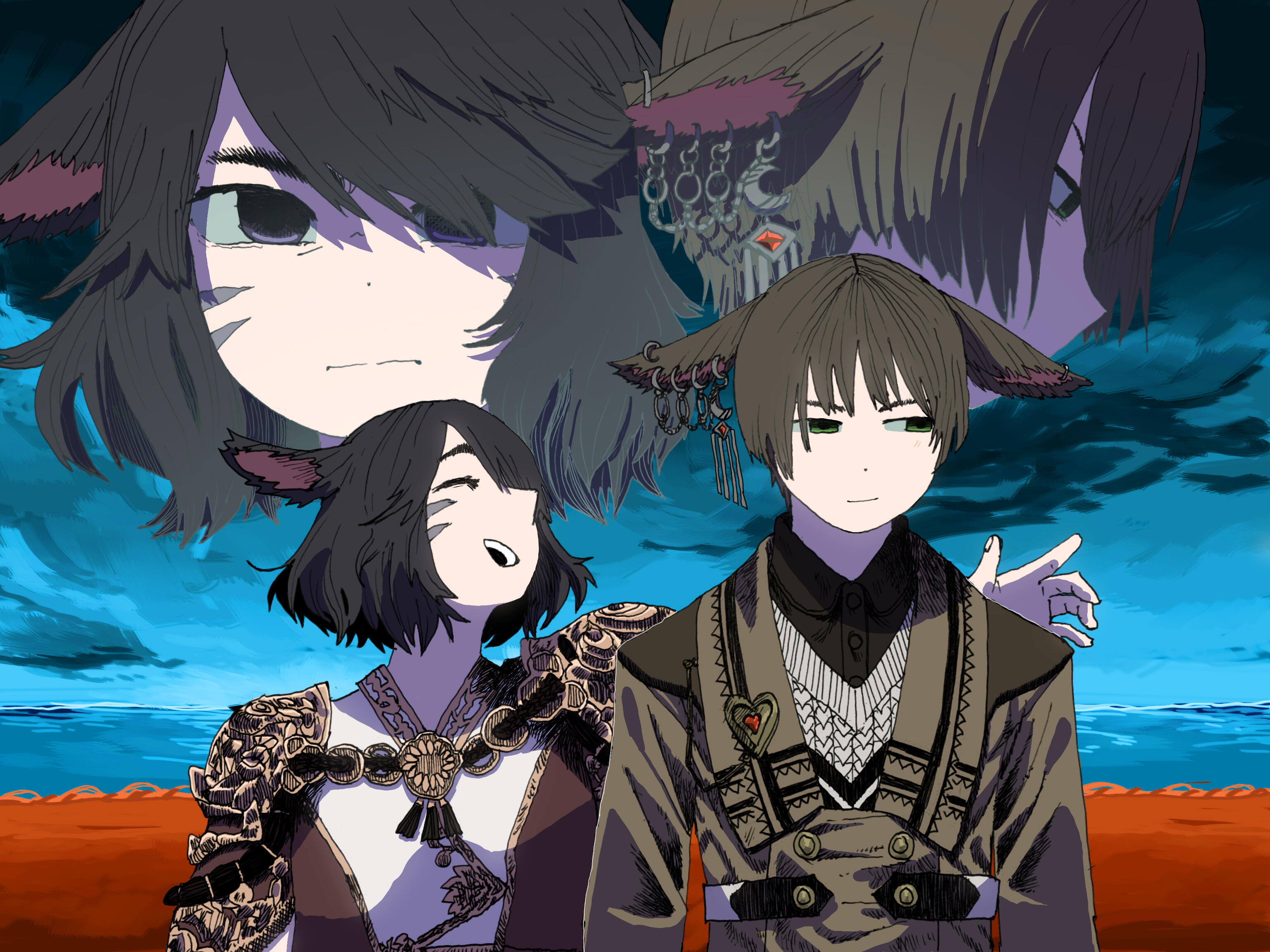 Headcanoned miqo'te ethnicity involving a large spread of miqo'te tribes (on islands across the Strait of Merlthor, in the Yafaem Saltmoor, and up the White Maiden river) that share a language group, various cultural traditions, and aetherial affinity to the degree of near-religious fervour and addiction.